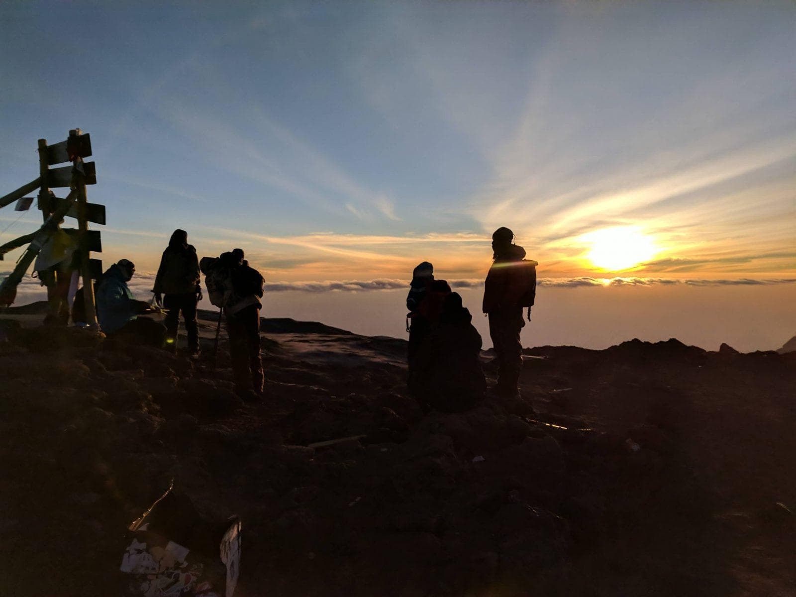 The climb will start at midnight. You will be woken up just before that to have some tea and biscuits. Around 5–7 hours later you will reach Stella Point which is the crater rim of Kilimanjaro. After another 1–2 hours you will reach Uhuru Peak at a height of 5895 m. This is truly a magnificent sight standing on top of Africa’s highest mountain watching the sunrise. This view will be one to remember and will make every minute of the last couple of days trekking worth your while. You will descent along the same way back to Barafu Camp which you will reach after 1–2 hours. The rest of the mountain team will be there waiting for you with some well deserve snacks and refreshments. You will rest for an hour or two before making your way to Mweka Camp where you will spend your last night on the mountain.