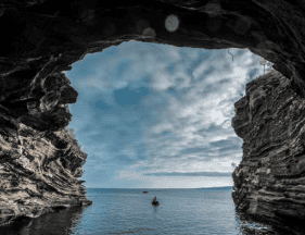waves will accompany you as you enter a dark cave under a spectacular arch. Around the corner, the collapsed amphitheater of