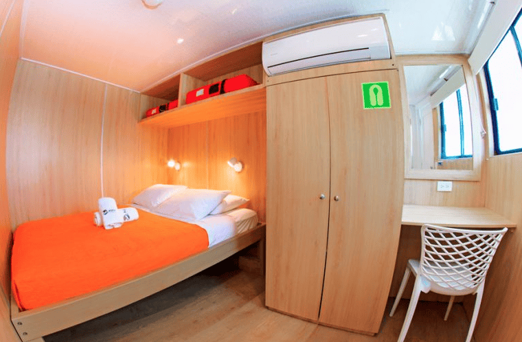 - Lodging on board in a cabin with private facilities